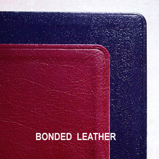 Bonded LeatherBonded Leather is made from real leather. However, as the name suggests, the cover is made from leather pieces that are bonded together with latex. Once bonded, the leather is dyed, cut and embossed to look like genuine leather. The look and feel is as genuine leather (though not high-grade leather). Because it is made of various pieces, it is not as durable as the genuine leathers and is therefore less expensive. (Note: The above pictures of Bonded leather are to depict the style of leather only not the actual colors. Shades of Black and Burgundy Bibles may be lighter or darker than those shown here.) |